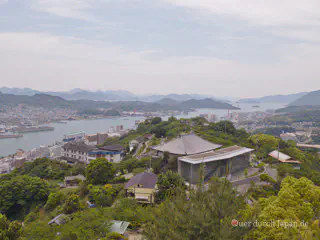 Auf einer kleinen Insel mitten in Hiroshima liegt der Friedenspark. An dieser Stelle detonierte am 6. August 1945 in 580 Metern Höhe die Little Boy, die erste Atombombe, und legte die Stadt in Schutt und Asche. Der Atombomben-Dom, früher ein Gebäude der Industrie- und Handelskammer, lässt das Ausmaß der Zerstörung erahnen. Im Park steht neben einem Museum noch ein Kenotaph mit den Namen der Opfer der Bombe, und eine Gasflamme, die erst erlöschen wird, wenn es keine Atombomben mehr auf der Welt gibt. Ein Denkmal erinnert an das Schicksal der kleinen Sasaki Sadako. Sie überlebte die Explosion, aber ein Jahr später erkrankte sie an Leukämie. Ein Brauch hier lautet, dass die Götter einen Wunsch erfüllen, wenn man 1000 Papierkraniche faltet. Sadako faltete die Kraniche, aber erlag dann doch ihrer Krankheit. Bis heute falten Schüler aus allen Teilen Japans lange bunte Papierkranich-Ketten als Symbol für den Frieden, welche hier (und an einem Denkmal in Nagasaki) aufgehängt werden.