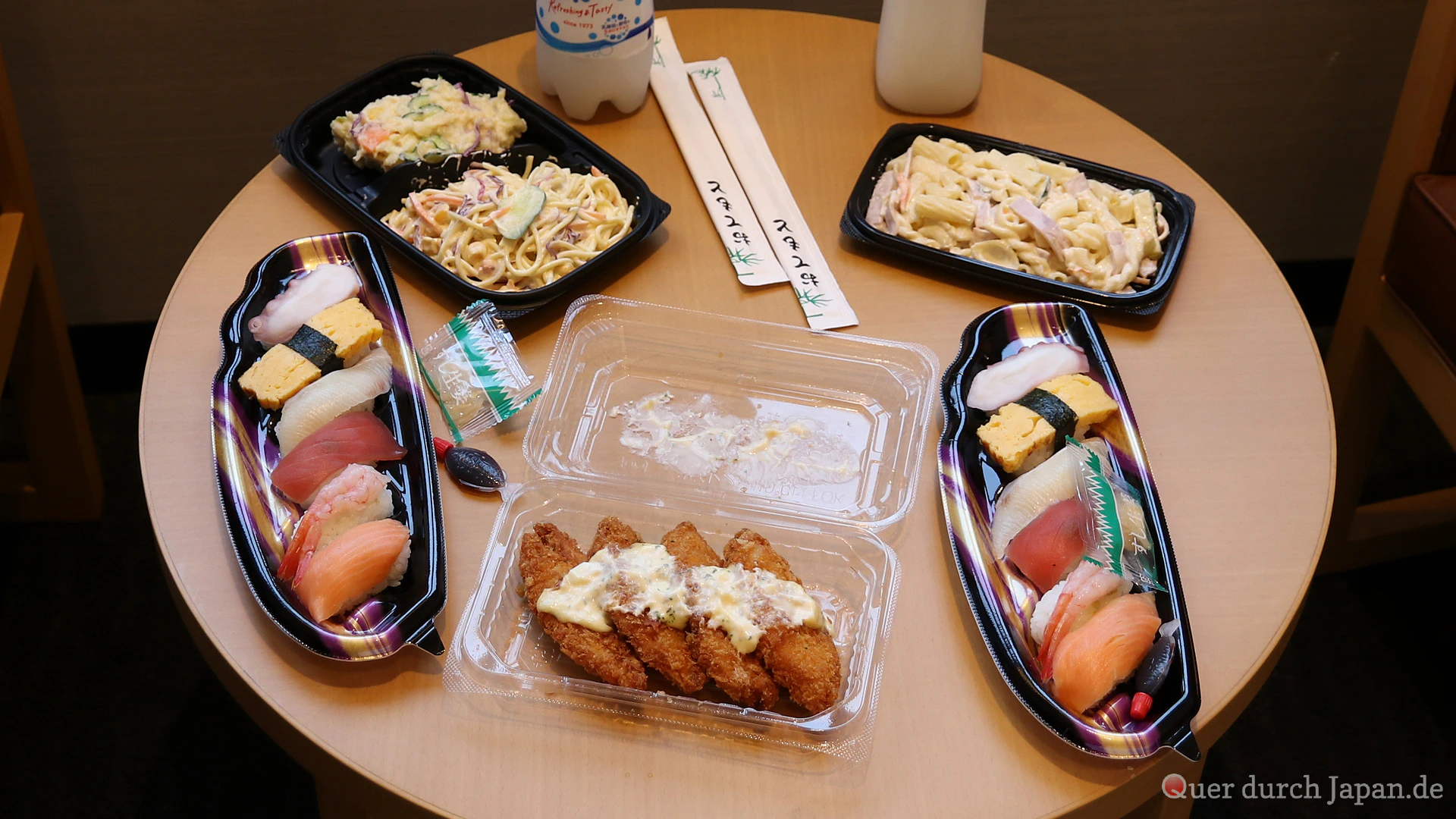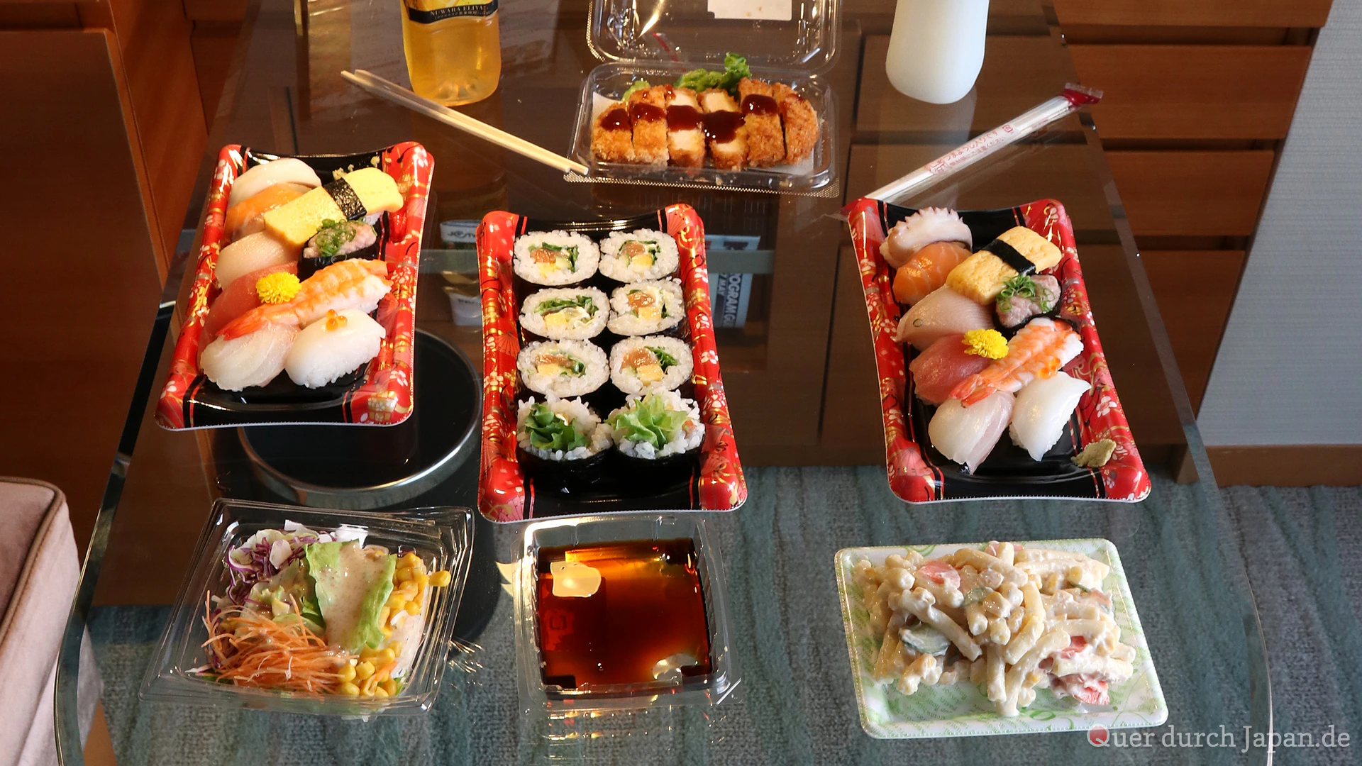 Aber unter uns: Nach dem Trubel des Tages bevorzugen wir es, in einem Supermarkt Sushi und Salate zu holen und diese in aller Ruhe auf dem Hotelzimmer zu verzehren.