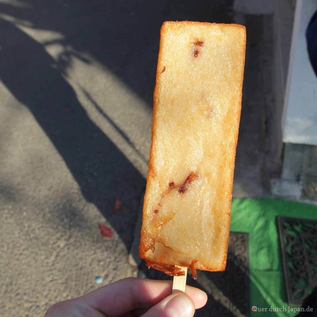 Tagsüber schlagen wir uns mit diesen Kleinigkeiten den Bauch voll. Hungrig waren wir in Japan noch nie.