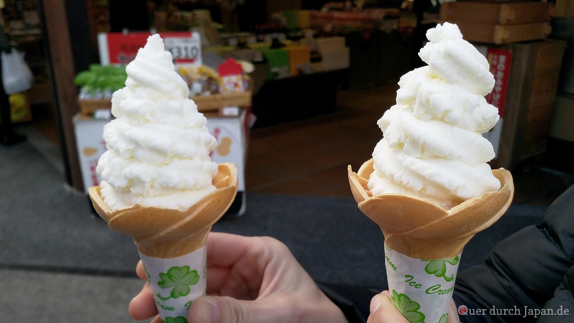 In den Einkaufsstraßen und großen Bahnhöfen findet man alle möglichen Imbisse, die Schnitzel, Kroketten, Bentō und andere Snacks anbieten. Viele Souvenirläden haben auch Softeis im Sortiment. Oder man holt sich einfach im nächsten Konbini ein Dampfbrötchen.
