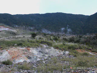 Bei unserer ersten Reise nach Japan im Jahr 2010 besuchten wir Ōwakudani, wörtlich übersetzt das große kochende Tal. Der Ort liegt auf dem etwa 80 km von Tōkyō entfernten Vulkan Hakone. Dank etlicher heißer Schwefelquellen brodelt, dampft und stinkt es hier gewaltig. Falls das Wetter mitspielt, hat man von hier aus aber eine gute Aussicht auf Japans wohl berühmtesten Vulkan, dem Fuji-san.