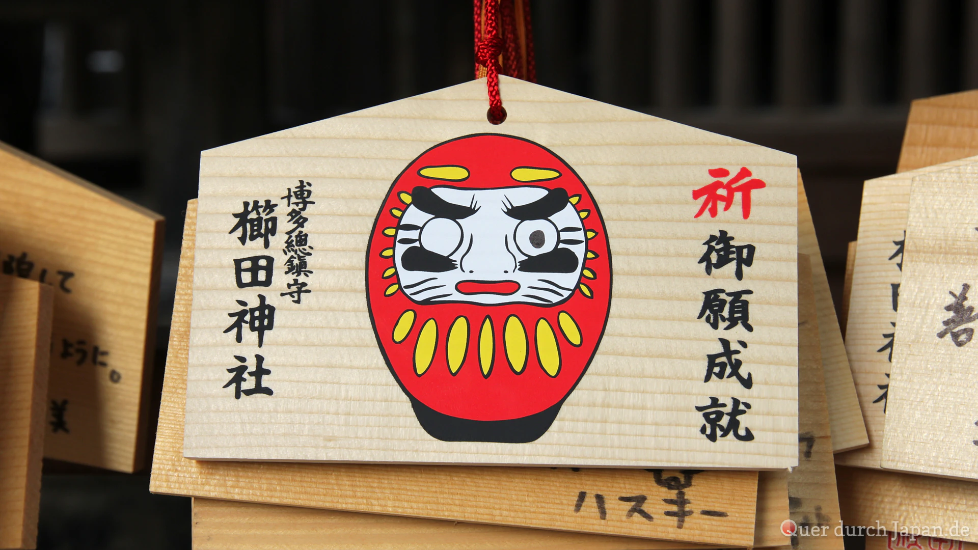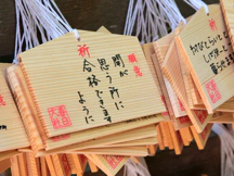 Man findet sie an fast jedem Tempel und Schrein: Eine Wand voller kleiner, bedruckter oder beschriebener Holztäfelchen, ema (絵馬) genannt. Besucher kaufen die Tafeln, beschriften eine Seite mit einem Wunsch und hängen sie dann auf.