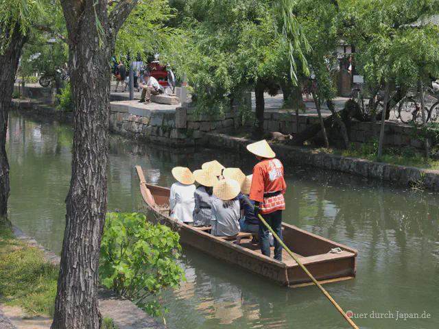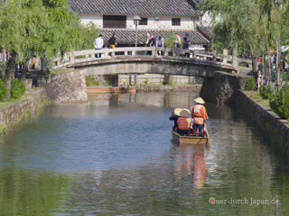 Gleich neben Okayama liegt die Stadt Kurashiki. Zur Edo-Zeit spielte die Stadt eine zentrale Rolle für den Reishandel. Der Name bedeutet “Stadt der Lagerhäuser” und bezieht sich auf die an einem Kanal gelegenen Reislager. Diese Canal Area kann auch heute noch besichtigt werden.