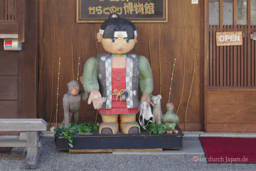 Interessant ist der etwas kitschig und deplatziert wirkende Kurashiki Uhrenturm am Nordausgang des Bahnhofs. Er ist Hans Christian Andersen gewidmet. Zu vollen Stunden hebt sich der obere Teil des Turmes an, und es erscheinen Figuren zu vier Märchen Andersens. Ich habe leider erst später von dem Glockenspiel erfahren, aber fand ein YouTube-Video dazu.