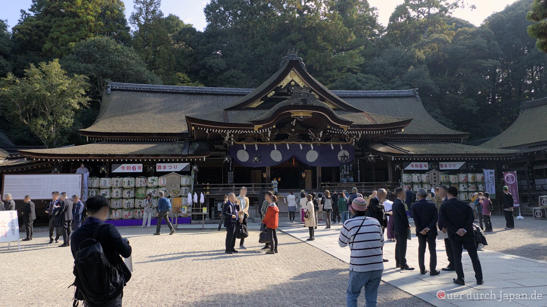 Der Weg begann an der Sakurai Station in Nara. Er führt durch Wälder und vorbei an etlichen Tempeln und Schreinen. Und wir hatten Glück: Am Omiwa Jinja fand gerade das diesjährige Sake-Festival statt. 150 Vertreter aus den Sake-Brauereien der Gegend versammelten sich hier, um für eine gute Sake-Produktion zu beten.